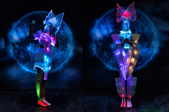 In this way, a piece of Led light up clothing is finished, and then we connect the controller, and you can see a piece of Led light up clothing that emits dazzling light. Isn’t it super simple, but also very fulfilling, in A technical costume was made under my guidance.