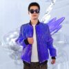 Introducing our latest fashion statement, the Hip Hop Jacket Fiber Optic Light Up Bomber Baseball Jacket! Made from a unique blend of fiber optic fabric, cotton, and polyester, this Long Sleeve Leather Jacket is a perfect addition to any wardrobe. With its innovative design and incredible features, this jacket is sure to turn heads wherever you go.