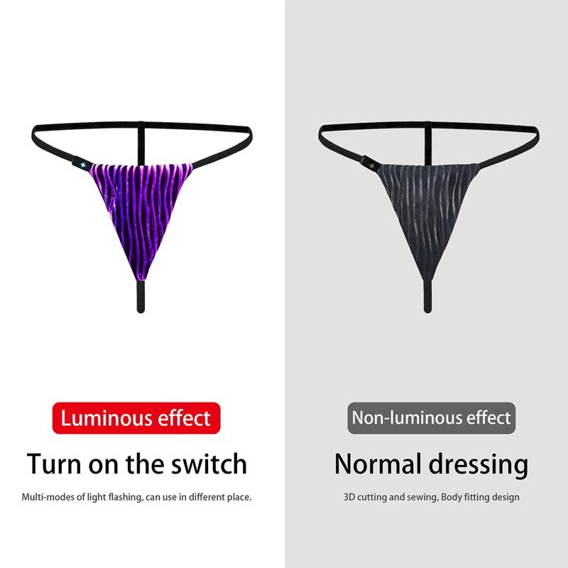 Glow lingerie set is made of optical fiber fabric (outer) and common fabric (inside), which is durable and lightweight. Use single-button switch 7 colorful lights, 4 flashing modes. Just press the button on the battery to choose your favorite color & mode at any time. Ensure secure & long-lasting usage.