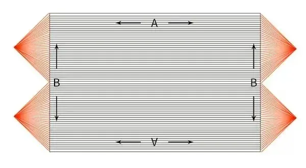 we have decided to name the end of the fiber fabric with the light guide fibers named end B,and the end of the weft length named end A.
