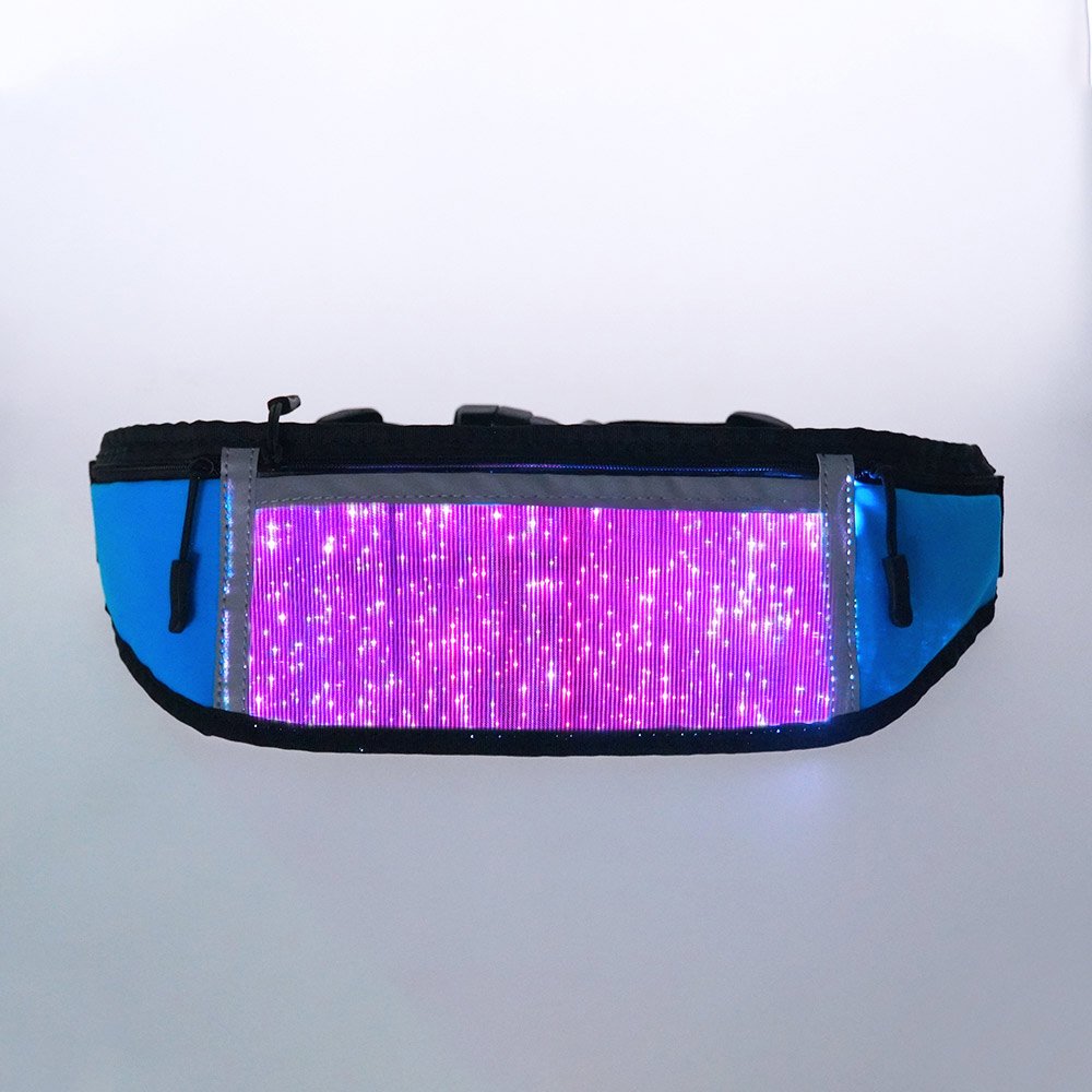 Discover the magic of our LED fanny pack, crafted from a blend of optical fiber fabric (outer) and common fabric (inside), resulting in a durable and lightweight accessory. With a single-button switch, choose from 7 colorful lights and 4 flashing modes, ensuring secure and long-lasting usage as you illuminate your run.