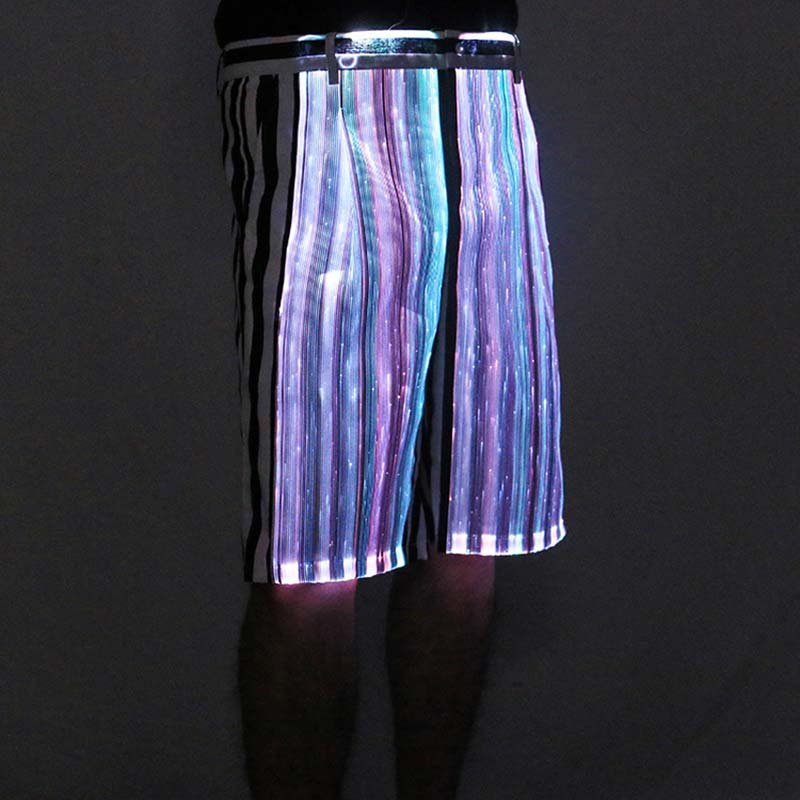 【7 Colors and 5 Patterns of Light】 Our Light Up Black and White Striped party shorts are designed with 5 bright LED flashing patterns: blinking, strobe, fading, smooth, and steady, making you highly visible in any situation. And with the ability to cycle through 7 shiny colors, you’re sure to stand out from the rest.
