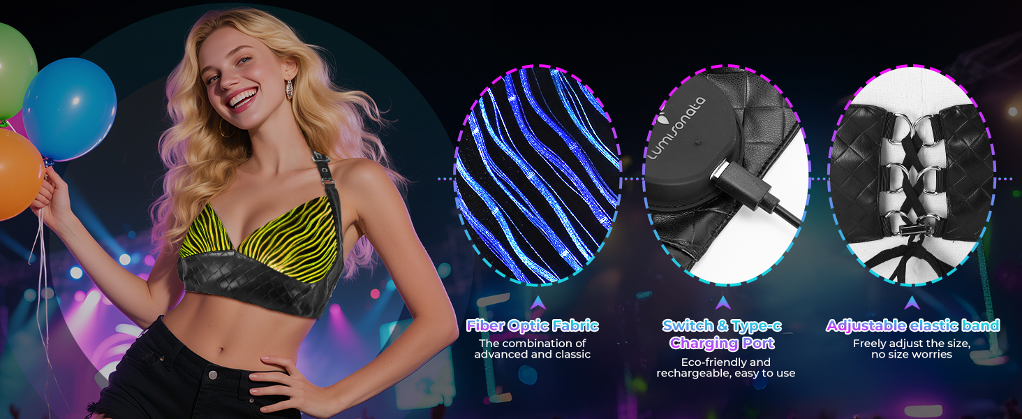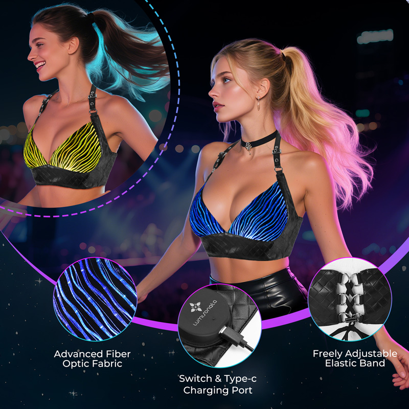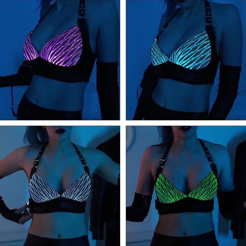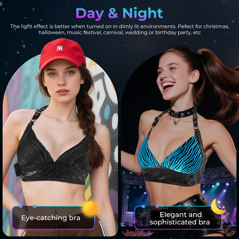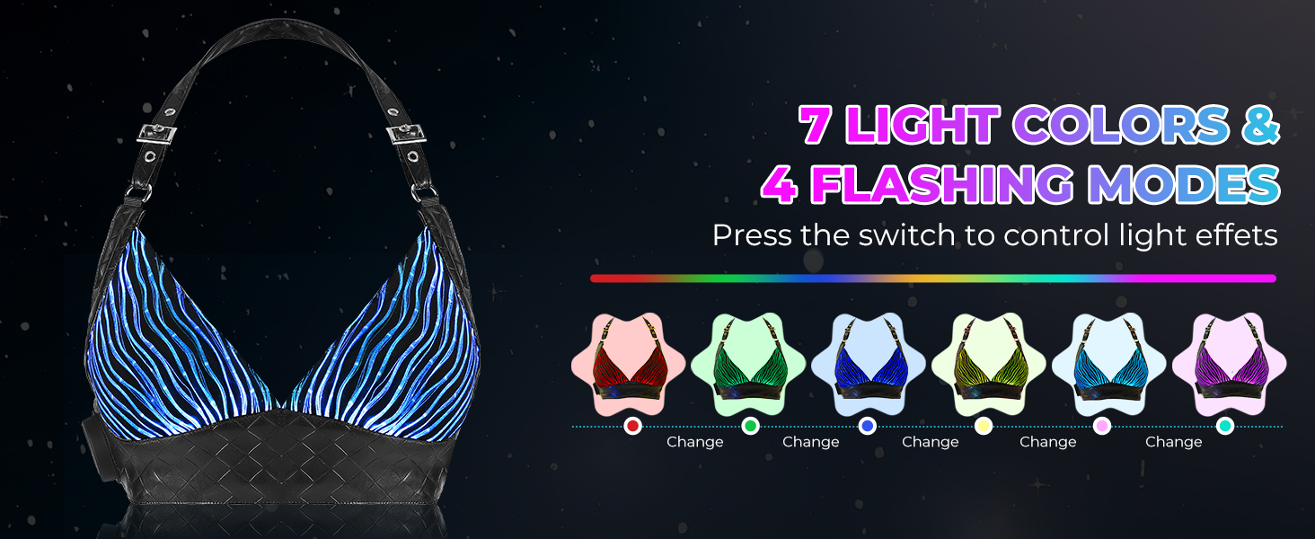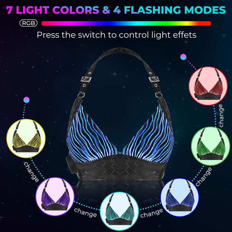 【Emanating Light: Fiber Optic Fabric】The outer layer of this ethereal bra is crafted from a bewitching fiber optic fabric that sets the stage for a breathtaking light show. With the touch of a single button, unleash a kaleidoscope of seven spellbinding colors and four entrancing flashing modes. This chameleon of a bra allows you to customize your radiance to match any mood or occasion.