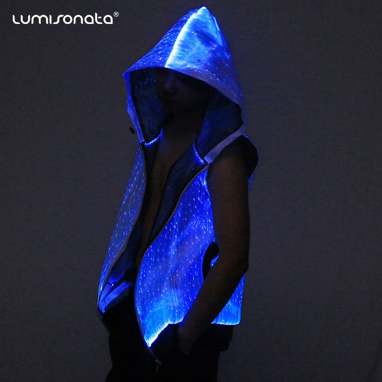 Skate Hoodies Color display  Fiber Optic Light Up Sleeveless Sport Sweatshirt